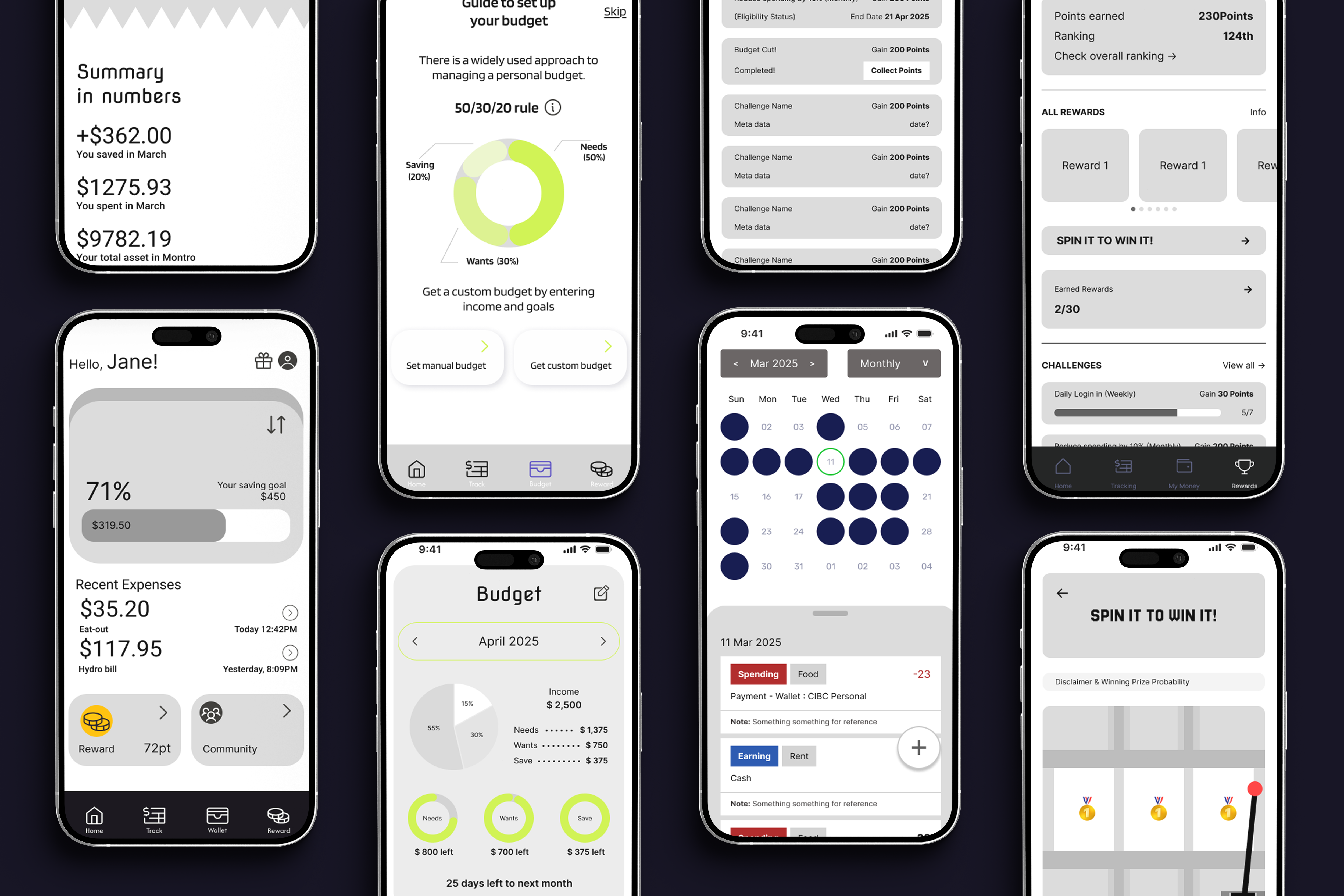 Montro transforms the tedious nature of expense tracking into an engaging habit by integrating a gamified ecosystem. Designed to combat "financial fatigue," the app features competitive leaderboards, milestone challenges, and a randomized reward wheel that provide immediate, positive reinforcement. Users earn points for consistent logging and hitting personal saving targets, which can then be redeemed for digital coupons. This solution utilizes vibrant progress indicators and clear visual rewards to shift the focus from the stress of spending to the excitement of achievement, fostering long-term retention through an interactive and approachable interface.